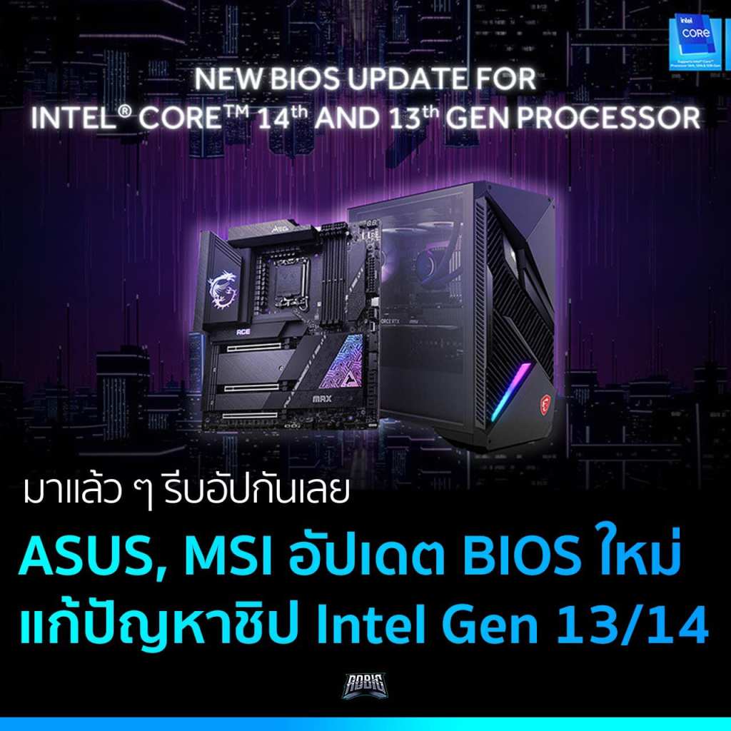 ASUS และ MSI ปล่อยอัปเดต BIOS สำหรับเมนบอร์ดที่รองรับชิป Intel Core Gen 14 และ 13 ตัวใหม่ เพื่อแก้ไขปัญหาความเสถียรของชิปแล้ว