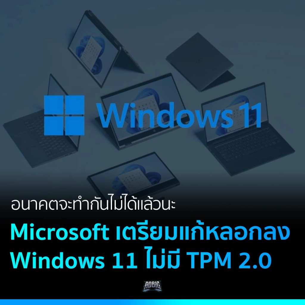 Windows 11 นั้นจำเป็นต้องอัปเกรดฮาร์ดแวร์ตัวเครื่องให้มี TPM 2.0 เพื่อเพิ่มความปลอดภัยในการใช้งาน และเป็นภาคบังคับ ถ้าไม่มีจะไม่สามารถติดตั้งใช้งานได้ แต่ก็มีวิธีการหลอกด้วยคำสั่ง command ที่ไม่ยากนัก เพื่อหลอกให้ระบบคิดว่ามี TPM 2.0 แล้ว และยอมให้ติดตั้งใช้งานได้