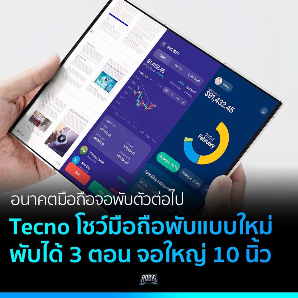 หลายคนอาจจะจำมือถือหน้าจอพับที่บางที่สุดในโลกอย่าง Honor Magic V3 กันได้ แต่นั้นก็ยังเป็นมือถือหน้าจอพับในฟอร์มแฟกเตอร์ 2 ตอนเหมือนทั่ว ๆ ไปที่เราเห็นในปัจจุบัน แต่กับของ Tecno ตัวนี้มาเป็น 3 ตอนเลย หน้าจอใหญ่เบิ้มกว่าเดิมเข้าไปอีก