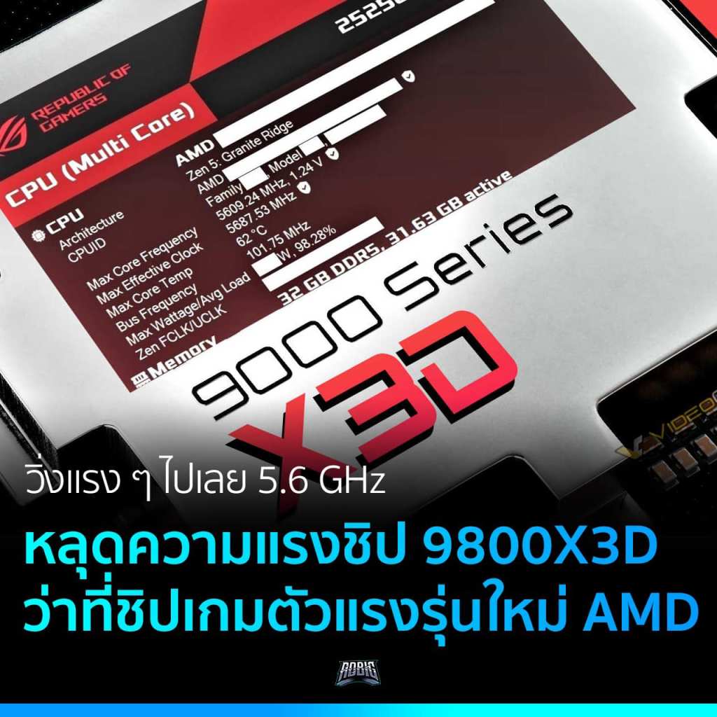 หลุดความแรงชิปใหม่ AMD Ryzen 7 9800X3D สายเกมตัวจริงกับคะแนน Cinebench R23 ความแรงทุกคอร์ 5.6 GHz กันไปเลย
