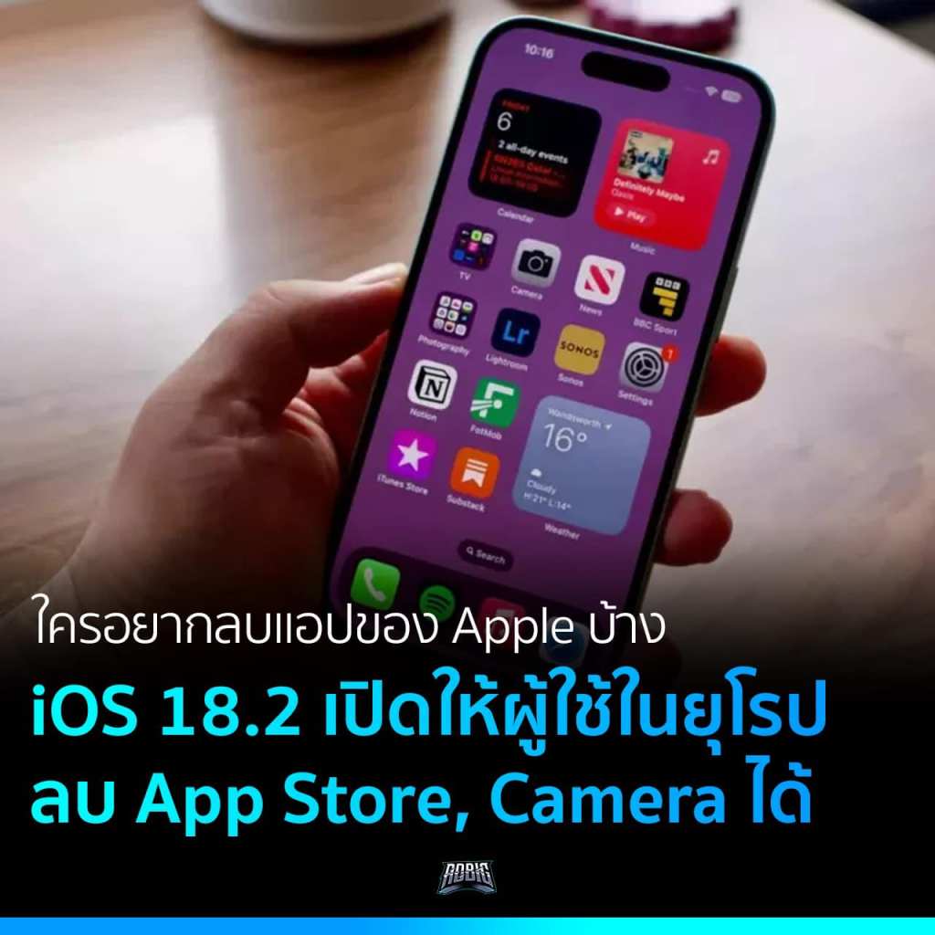 iOS 18.2 เวอร์ชันใหม่จะเปิดให้ผู้ใช้ในยุโรปสามารถลบ App Store และแอปกล้อง ออกจากตัวเครื่องได้