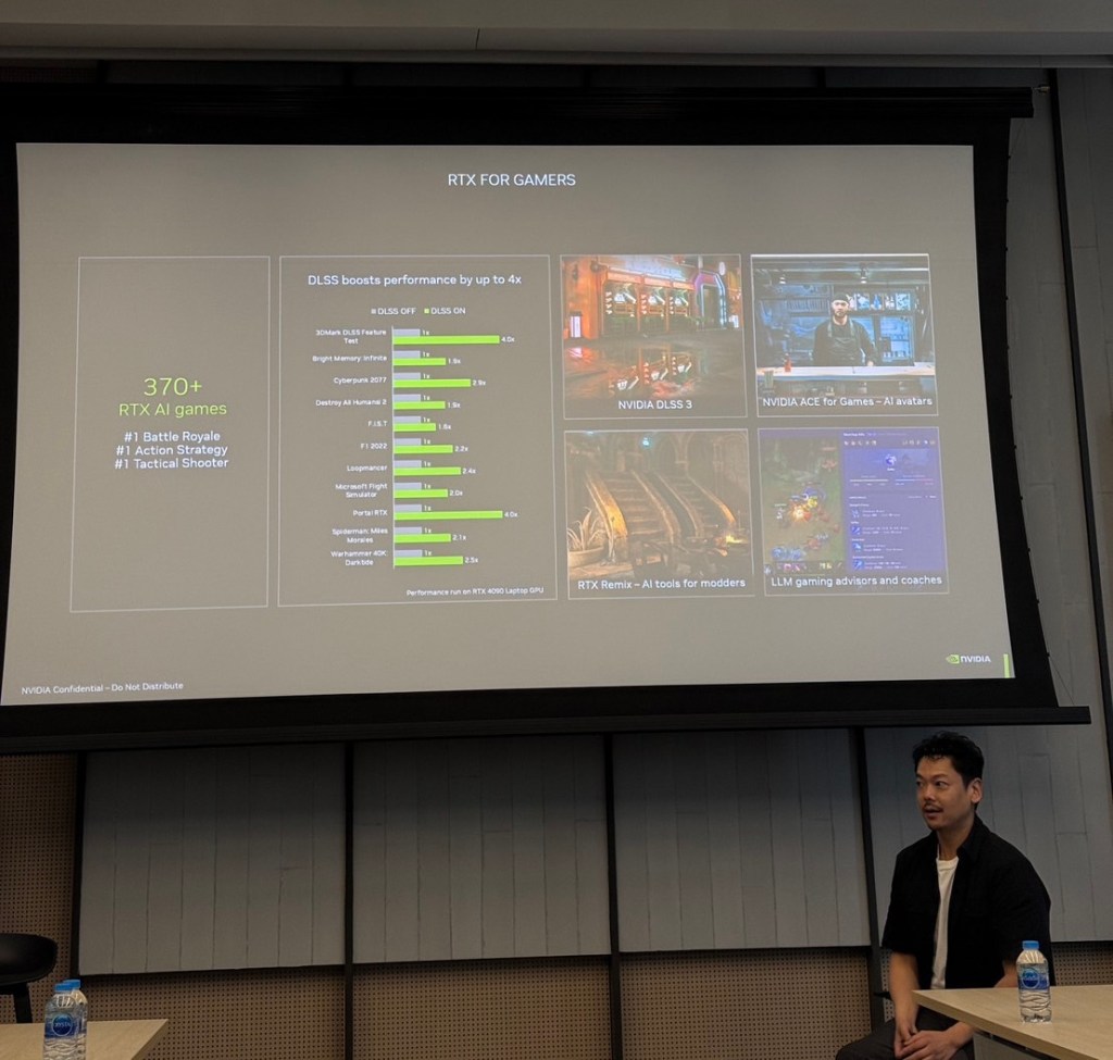 ภายในงานสาธิต GeForce RTX AI PC Tour ครั้งนี้ ทางทีมสื่อมวลชนได้มีส่วนร่วมในการทดสอบประสิทธิภาพของ AI บน RTX ซึ่งนำการสาธิตโดยคุณ Jeff Yen ผู้อำนวยการอาวุโสฝ่ายการตลาดผลิตภัณฑ์เทคนิค ภูมิภาคเอเชียแปซิฟิก (Senior Technical Product Marketing Director, APAC) ของบริษัท NVIDIA โดยเน้นให้เห็นว่าทุกเครื่องพีซีที่มาพร้อม GeForce RTX AI ถูกออกแบบมาเพื่อให้มีความเป็นเลิศในการเล่นเกม ทำงานสร้างสรรค์ และการเพิ่มประสิทธิภาพการทำงาน พร้อมทั้งยกระดับการเข้าถึงเทคโนโลยีไปอีกขั้น