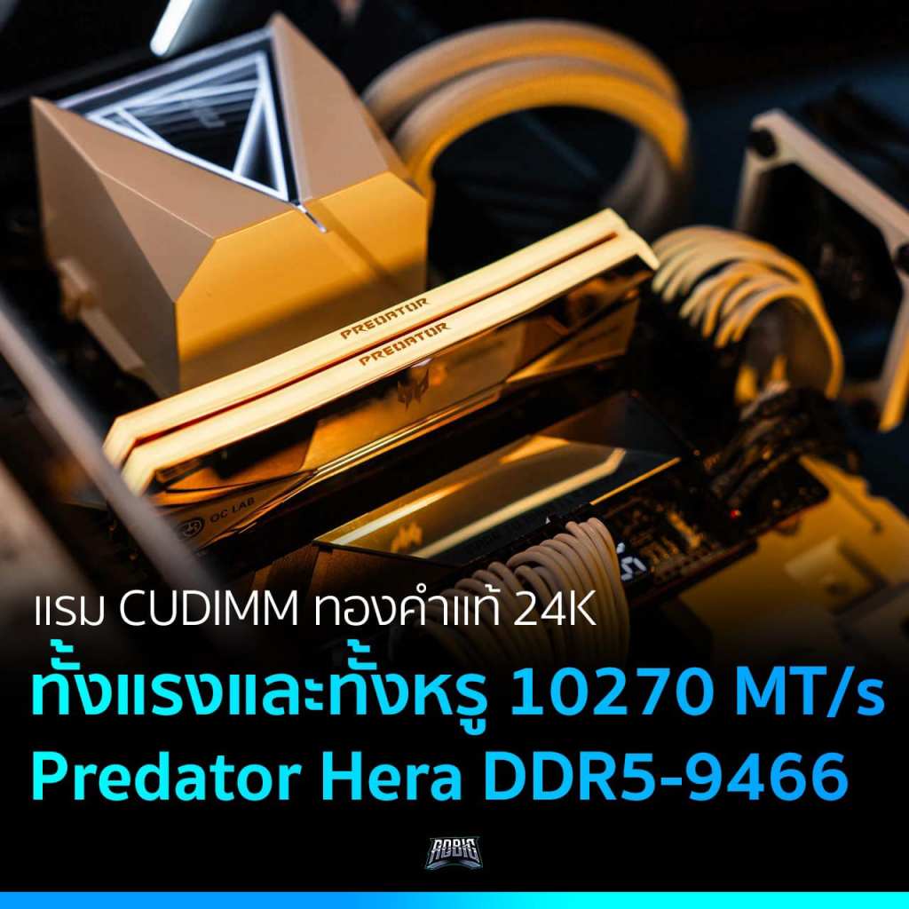 Acer เปิดตัวแรมใหม่ Predator Hera DDR5-9466 CUDIMM มาพร้อมสีสันทองอร่าม แรงจัด ๆ 10270 MT/s OC