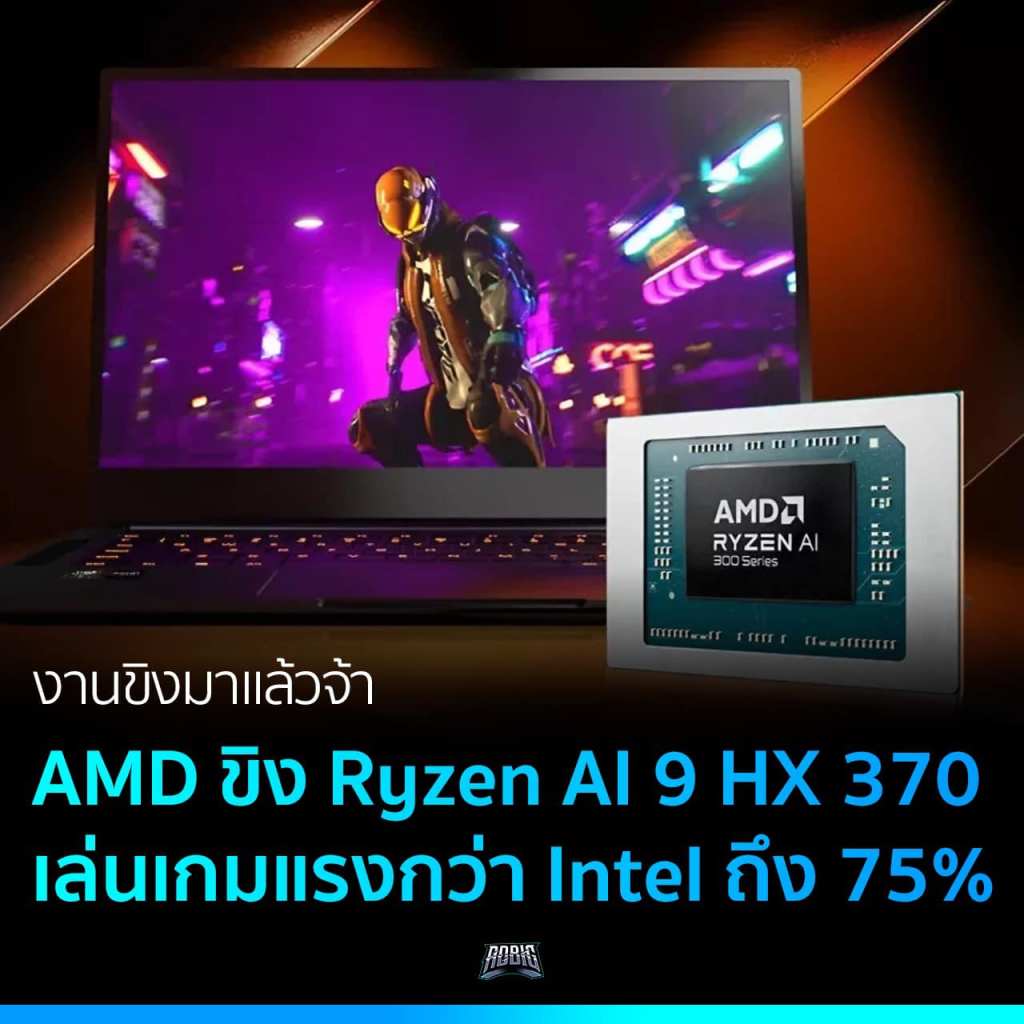 AMD เคลมความแรงชิป Ryzen AI 9 HX 370 เหนือกว่า Intel Core Ultra 7 258V ในการเล่นเกมถึงกว่า 75%