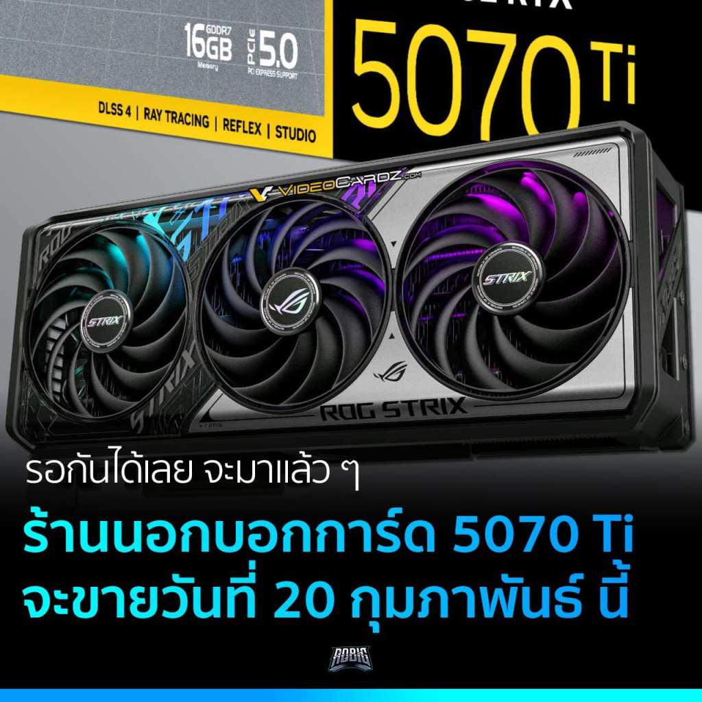 ร้านออนไลน์อีกแห่งยืนยันแล้วว่าการ์ดจอใหม่รุ่นที่ 3 ของไลน์อัป RTX 50 คือ GeForce RTX 5070 Ti จะเปิดขายวันที่ 20 กุมภาพันธ์ นี้