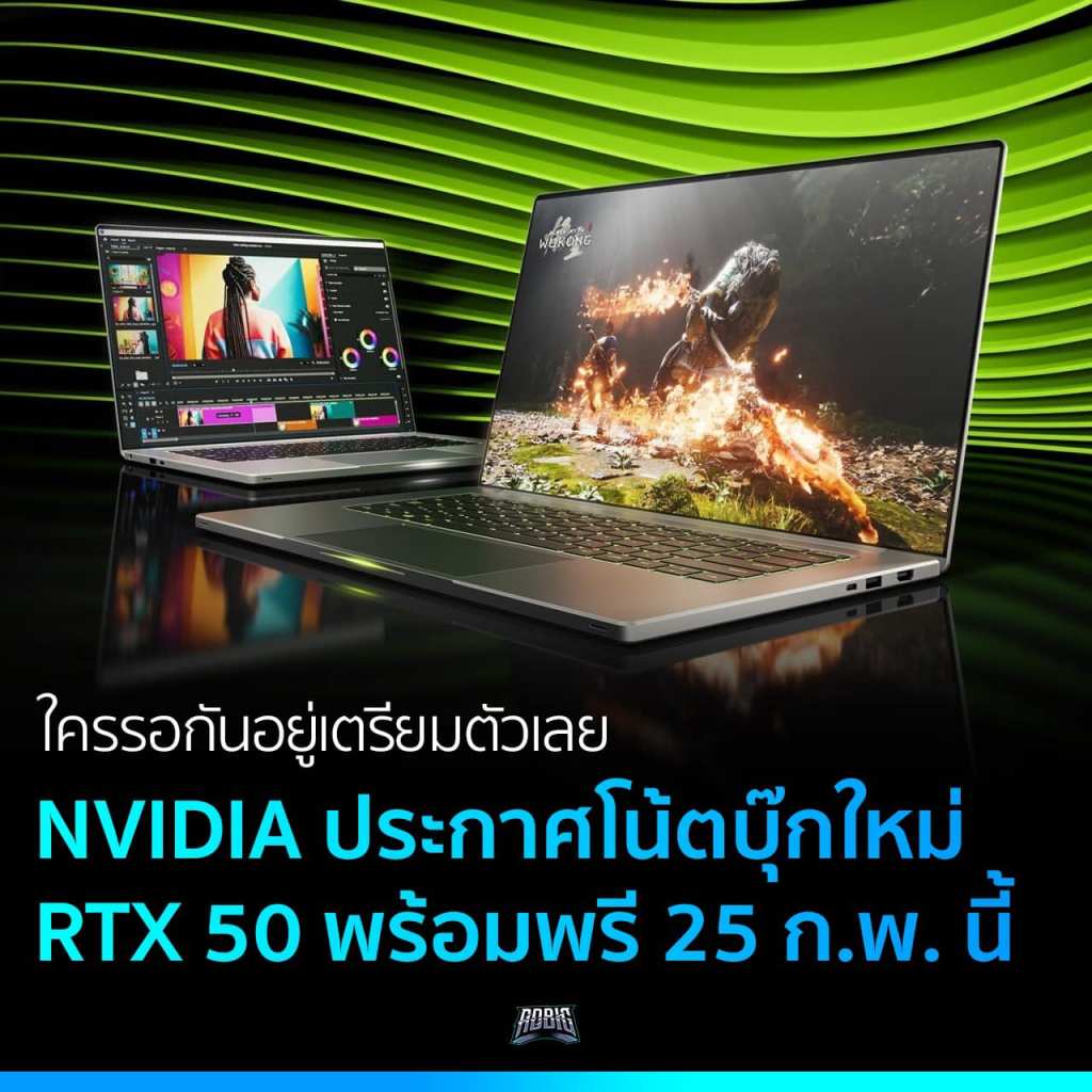 NVIDIA ประกาศเตรียมเปิดให้สั่งซื้อโน้ตบุ๊กรุ่นใหม่ที่มาพร้อมกับการ์ดจอตระกูลใหม่ GeForce RTX 50 เริ่มวันที่ 25 กุมภาพันธ์ นี้