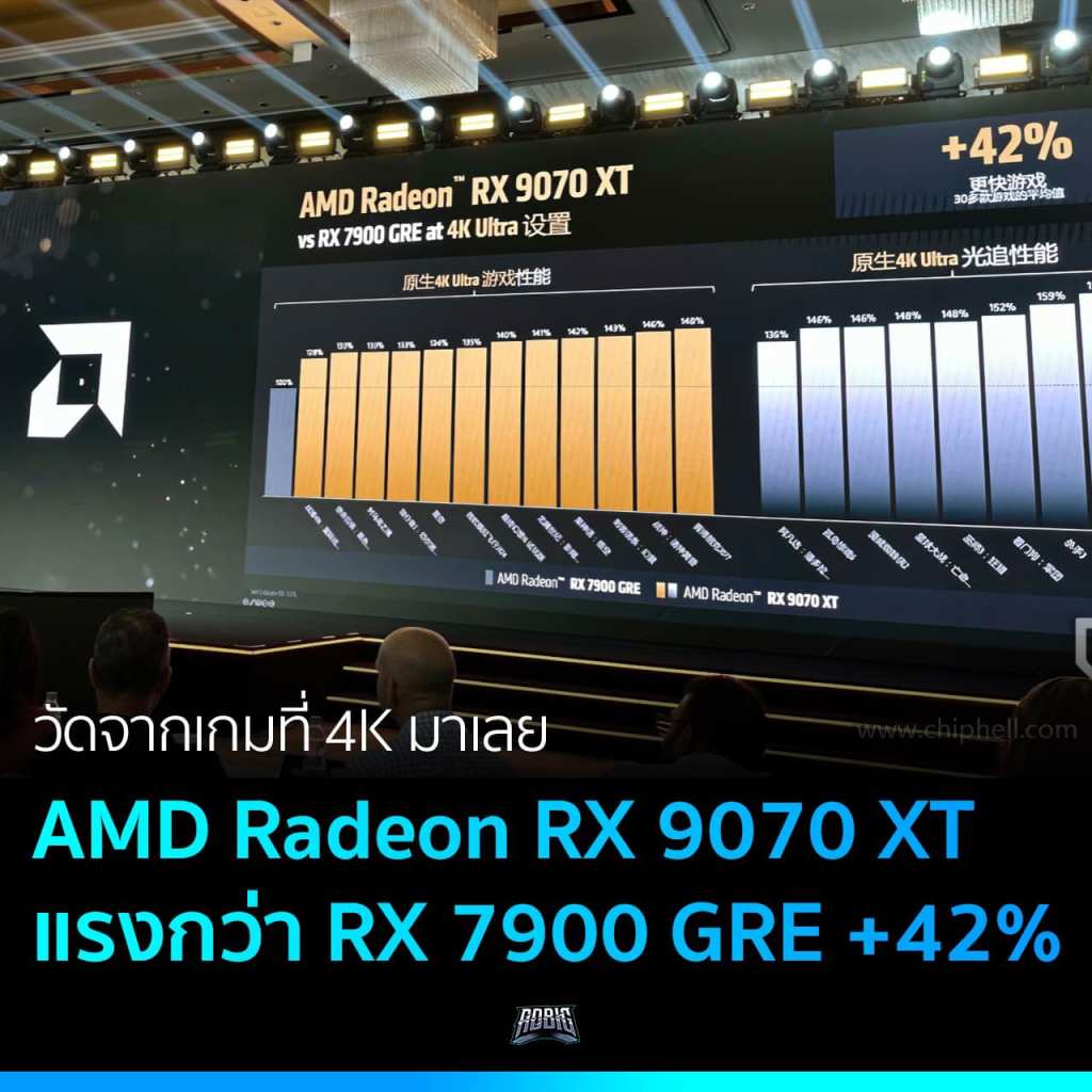 AMD ยืนยัน การ์ดจอรุ่นท็อปตัวใหม่สุดของค่าย Radeon RX 9070 XT จะแรงกว่า RX 7900 GRE ที่ความละเอียด 4K ถึง 42%
