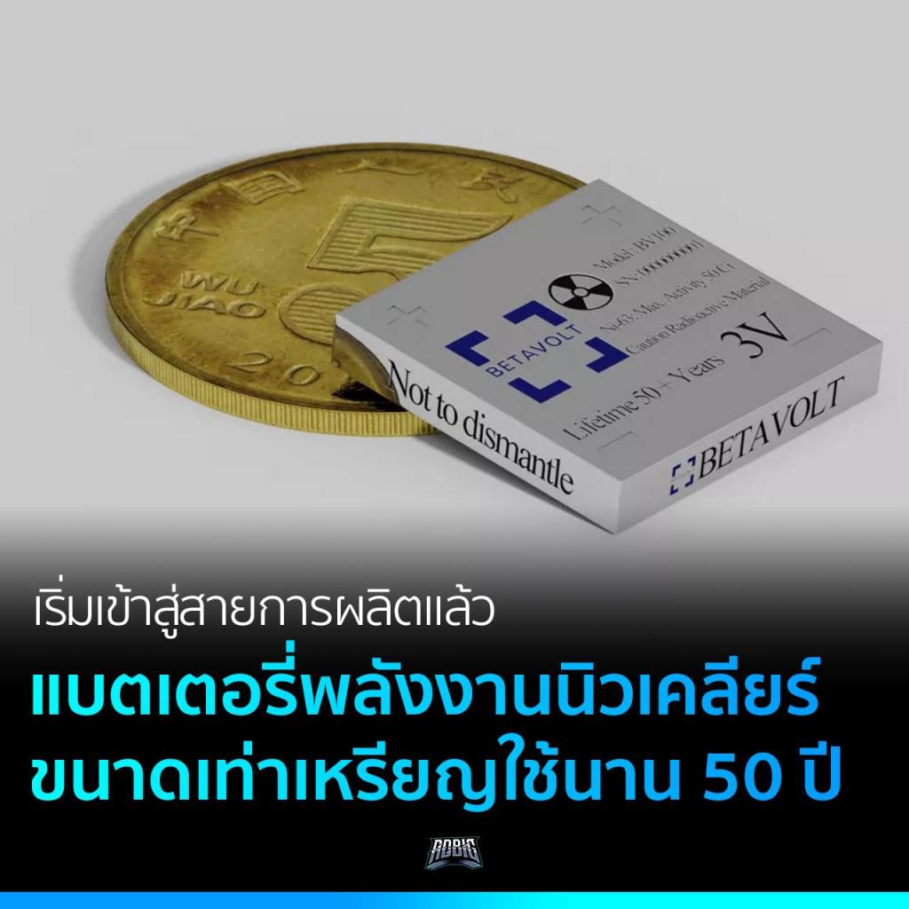 นี่คือแบตเตอรี่พลังงานนิวเคลียร์แรงดันไฟ 3V ขนาดเล็กเท่าเหรียญ พร้อมอายุการใช้งานได้ยาวนานถึง 50 ปี เริ่มเข้าสู่สายการผลิตแล้ว