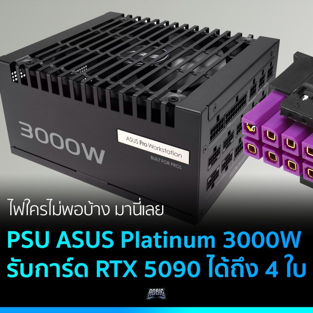 ไฟ PSU ที่ใช้อยู่พอกันมั้ย ถ้าไม่พอ จัดไปเลยกับ ASUS 3000W PSU ให้ไฟเหลือ ๆ เลี้ยงการ์ดจอ RTX 5090 ได้เลยถึง 4 ใบ