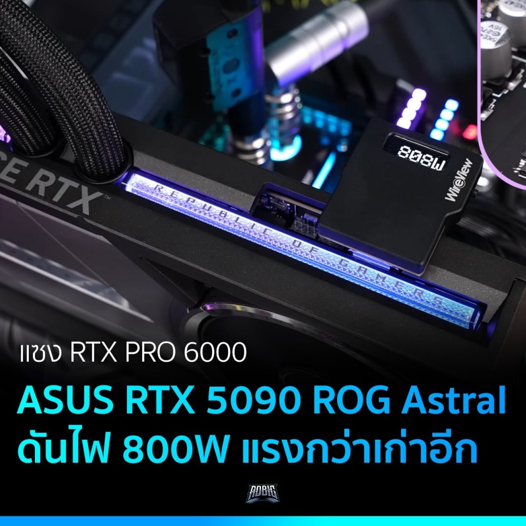 ASUS RTX 5090 ROG Astral การ์ดจอตัวท็อปพร้อมชุดน้ำเอามาอัดไฟเพิ่มโดยนักโอเวอร์คล็อก ดันกำลังไฟเพิ่มไปถึง 800W