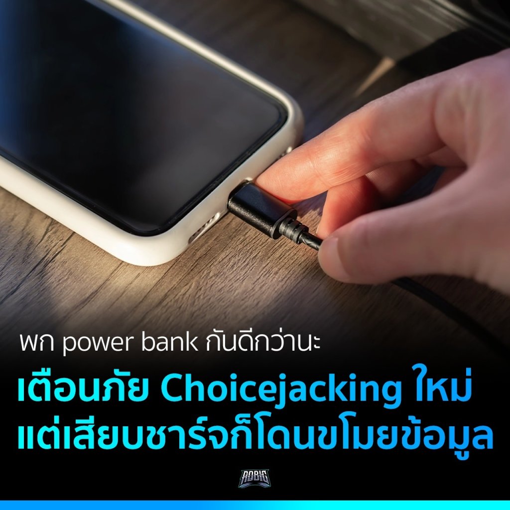 ตำรวจไซเบอร์ของไทยหรือ บช.สอท. ออกมาเตือนภัยใหม่เพิ่มกันอีกแล้ว รอบนี้เป็น Choicejacking ที่เป็นการโจมตีตัวเครื่องมือถือของเราผ่านการชาร์จไฟ