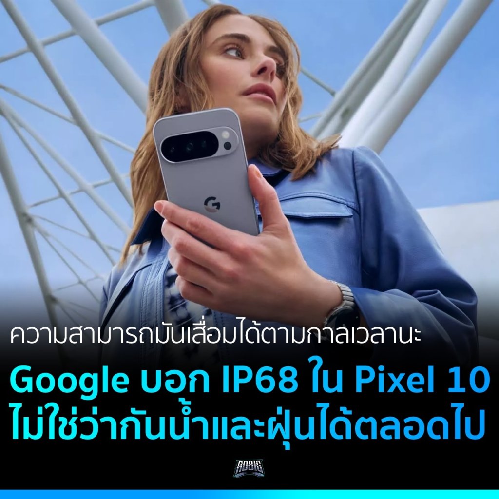 โดยบอกผ่านโพสต์บน X ว่ามาตรฐาน IP68 ของ Pixel 10 ไม่ได้หมายความว่าอุปกรณ์จะกันน้ำหรือฝุ่นได้ แต่เป็นการทนทานต่อน้ำและฝุ่นได้มากกว่า “ไม่ได้กันน้ำถาวรและความสามารถนี้จะค่อย ๆ เสื่อมสภาพไปตามกาลเวลา”