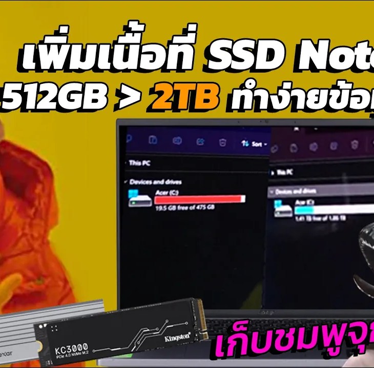 จบปัญหา Notebook เนื้อที่เต็ม โหลดไฟชมพูไม่จุได้ จับยัด SSD 2TB + Clone ไฟล์อยู่ครบไม่หาย!! ขั้นตอน 00:00 Intro 00:30 KC…